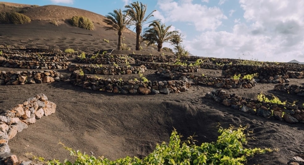 Cuando las erupciones volcánicas de Timanfaya arrasaron la tierra fértil, entre 1730 y 1736. Los agricultores, con el fin de preservar la humedad y proteger a las plantas de unas condiciones climatológicas tan extremas, cubrieron con lava fragmentada, lapili, la superficie de cultivo. De este modo renace la isla de las cenizas volcánicas y el cultivo de la vid con variedades únicas y exclusivas como la Malvasía Volcánica.